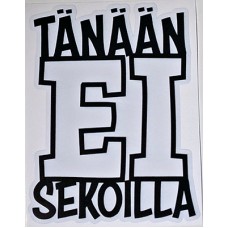 Tänään ei sekoilla. Tarran koko 12x15,6cm. Tarra tulostettu laadukkaalle vinyyli teipille ja lamin..